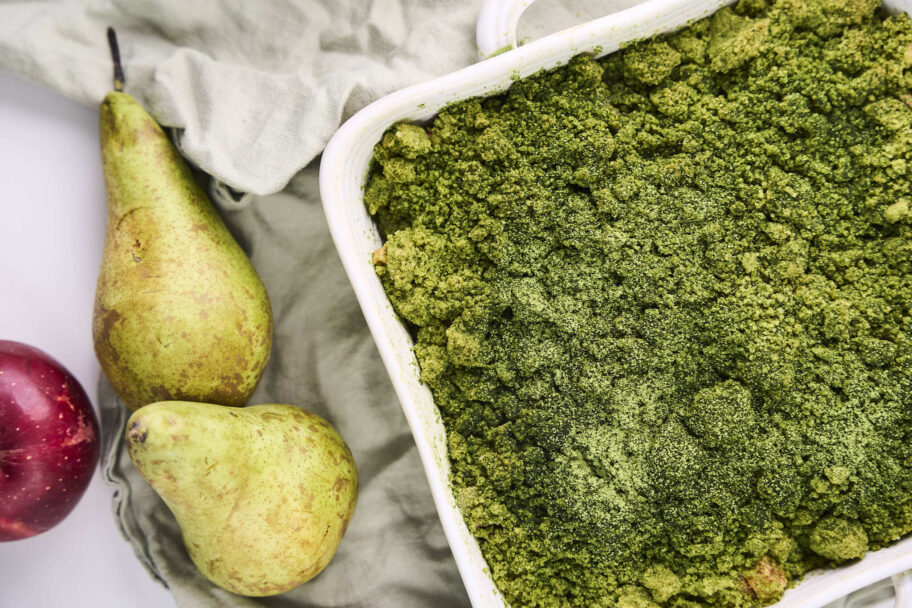 Le crumble aux fruits… un goût qui rappelle les après-midis paresseux chez nos mamies. L’arôme des fruits cuits au four et du crumble croustillant évoque ces moments insouciants, remplis de chaleur, partagés en famille. Si nous avons de si beaux souvenirs, pourquoi ne pas les raviver aujourd’hui avec un dessert ? Vous pouvez enrichir le traditionnel crumble d’une touche de modernité et y ajouter du matcha qui apportera une pointe d’amertume. Promis, ce crumble au matcha rassemble les générations.