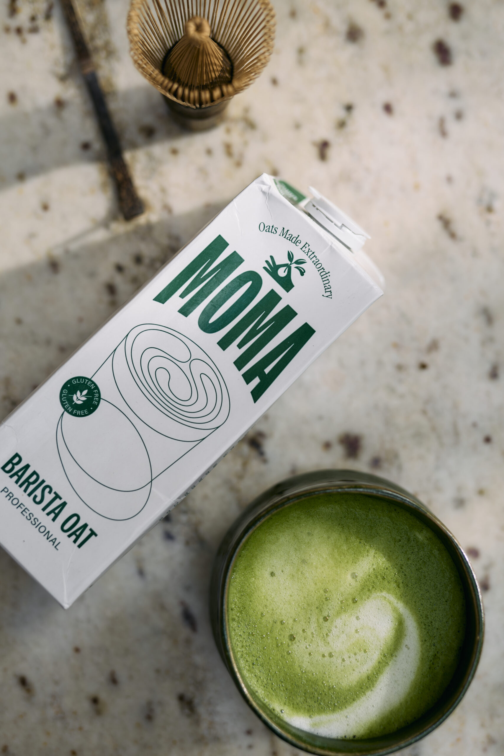 MOMA Barista Oat Professional est une boisson à l’avoine spécialement conçue pour les cafés et les restaurants. Elle a les mêmes ingrédients de qualité premium que MOMA Barista Oat Organic mais c’est une version optimisée pour mousser parfaitement dans vos matcha latte et créer une mousse lisse et stable et une texture crémeuse.