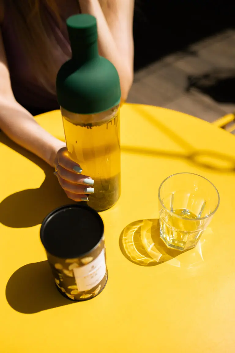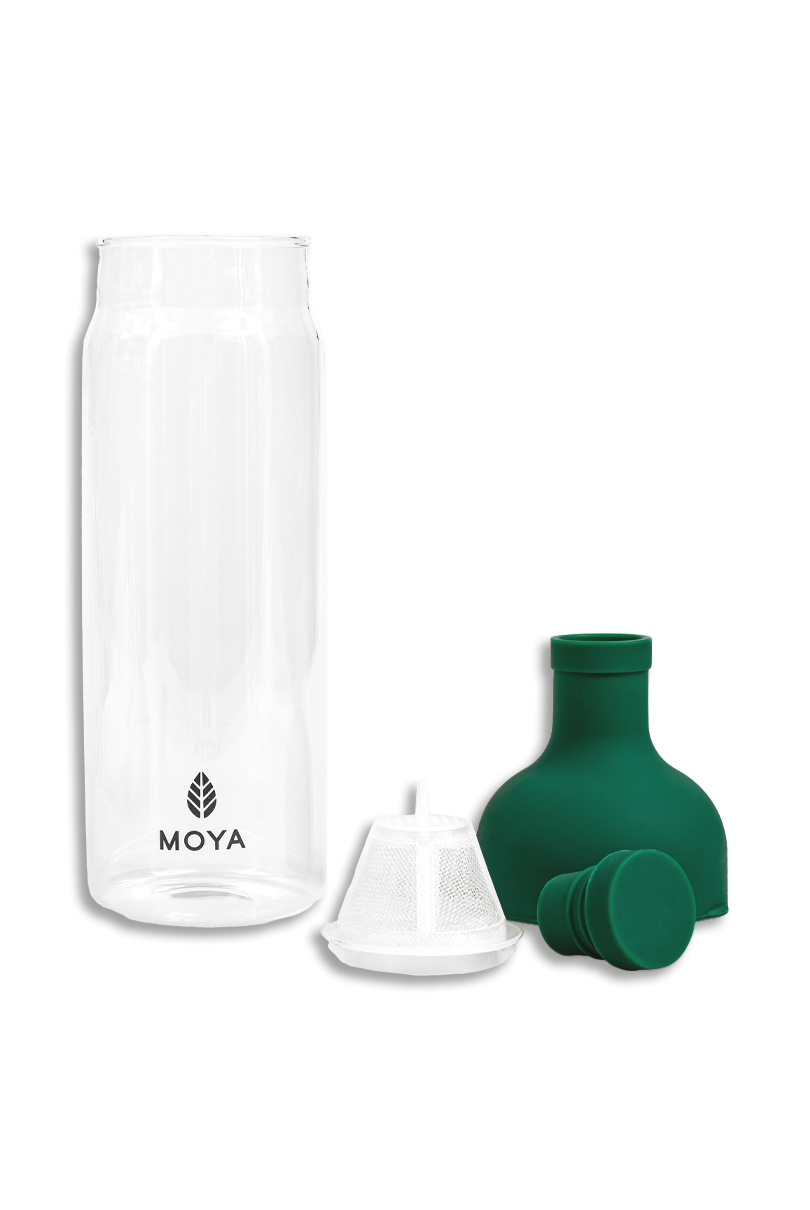 Cette grande bouteille à cold brew (750 ml) est un excellent choix pour les personnes désirant préparer une grande quantité de thé, par exemple pour se rafraîchir en profitant du beau temps dans son jardin avec ses amis. Fabriquée en verre résistant à la chaleur, elle allie esthétique, fonctionnalité et durabilité. Sa forme classique et la partie supérieure en silicone ajoutent à son élégance et à sa modernité. La préparation de l’infusion est simplissime : il suffit de verser le thé à feuilles de votre choix, le couvrir d’eau froide et le laisser toute la nuit au réfrigérateur (7 à 12 heures). La boisson ainsi obtenue est douce, savoureuse et sans amertume.