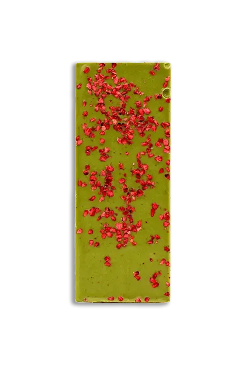 Le goût délicat de ce chocolat blanc au matcha fabriqué à la main est le résultat d’un sublime mélange de Moya Matcha Daily, des framboises et du beurre de cacao. On adore ce chocolat pour sa « matchatitude ». La saveur du matcha n’est pas masquée par une douceur excessive, car aucun compromis n’a été fait sur la quantité de matcha utilisée pour créer ces tablettes finement élaborées. Les framboises sauvages apportent une subtile note fruitée en fin de bouche, familière à ceux qui ont déjà goûté notre populaire recette de cheesecake au matcha.