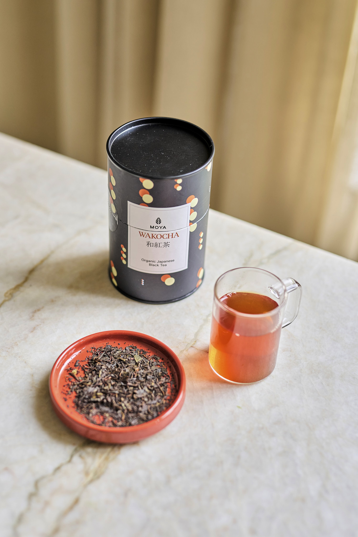 Le goût de ce thé noir en feuilles est raffiné et délicatement floral, avec des notes de miel et d’épices bien prononcées. Le mot « kou-cha » (紅茶) se traduit par « thé de couleur cramoisie ». Le wakocha doit son nom à l’eau douce du Japon que les feuilles de thé infusées teintent en une nuance de rouge foncé avec une touche de bleu. C’est également pour cette raison qu’il était appelé « thé rouge » par le passé. Mais lorsque ce thé est infusé avec de l’eau moyennement dure, plus répandue en Europe, le wakocha prend une couleur ambrée, foncée et intense. Moya Wakocha vient de la région de Mie sur l’île de Honsiu.