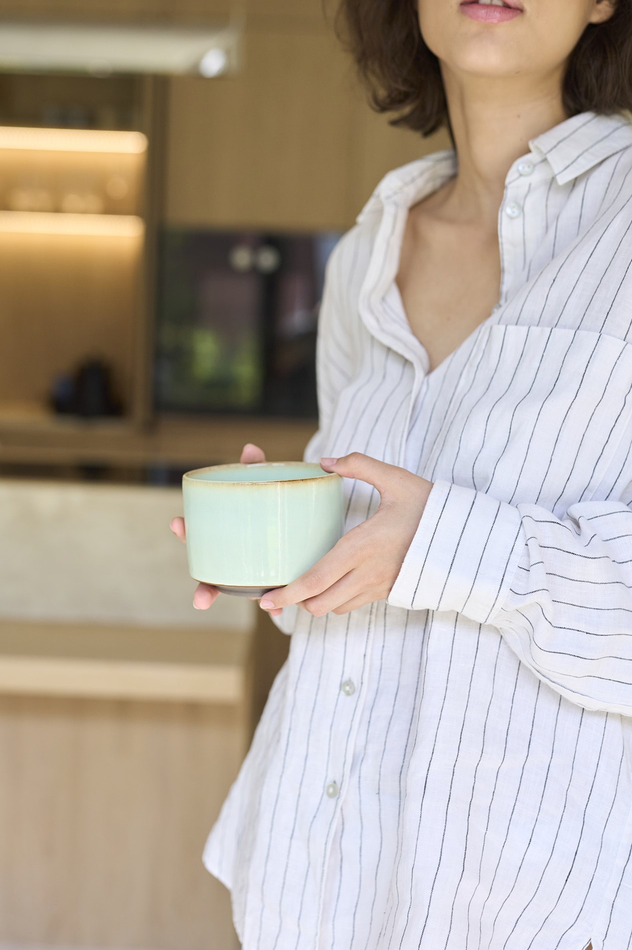 Le matchawan a été façonné à la main au tour de potier en argile grise, avec une légère adjonction de chamotte, puis émaillé selon une tradition japonaise séculaire.