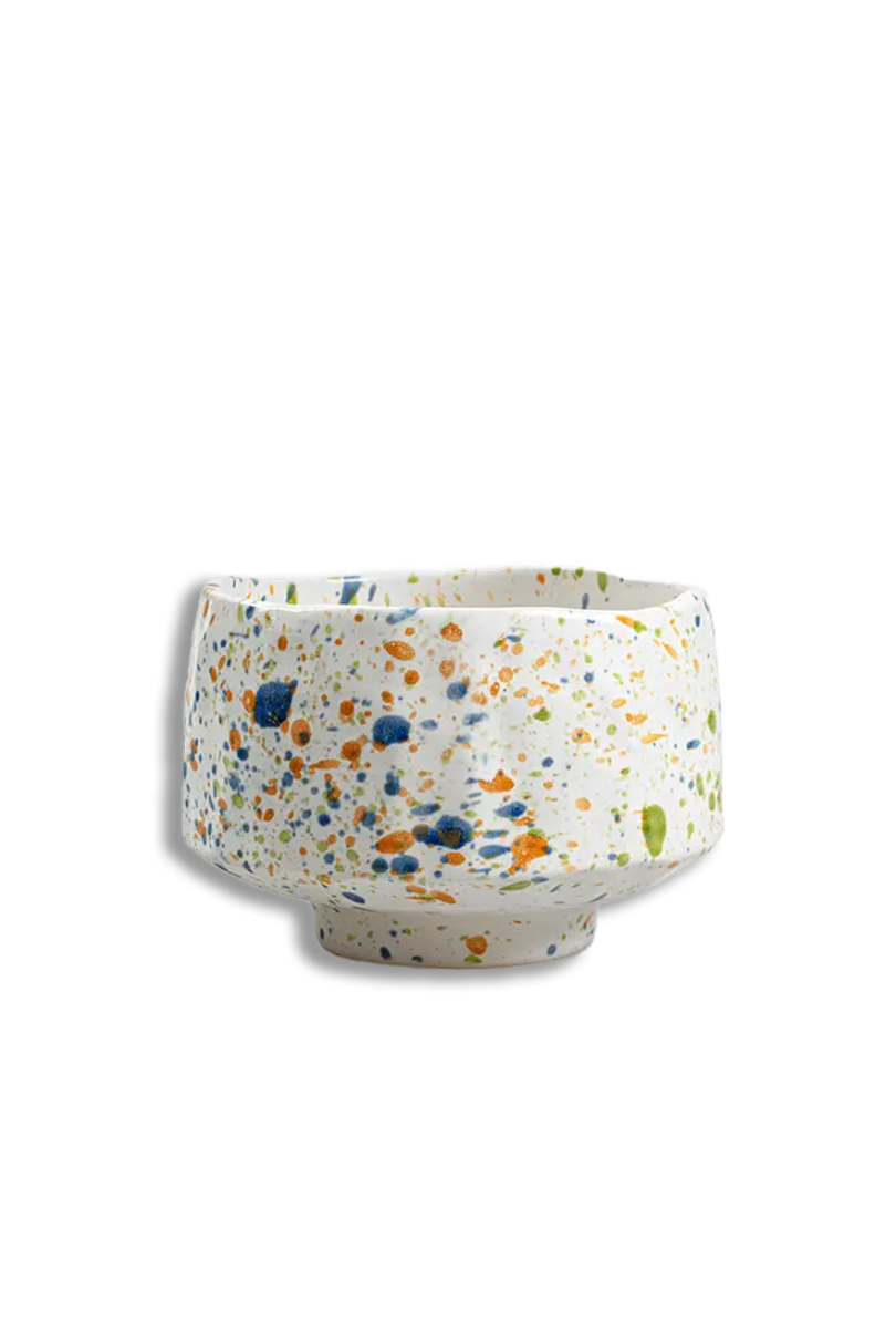 Le matchawan Kusama est un récipient à matcha unique. Il attire l’œil par son aspect loin d’être banal. Ses petits pois irréguliers et colorés font penser aux créations de l’artiste japonaise Yayoi Kusama. En raison de l’utilisation fréquente de ce motif dans ses œuvres, l’artiste en question est appelée la « Princesse aux petits pois ». Le bol Kusama ravira les amateurs d’art et de design et tous ceux qui, comme notre bol, aiment se démarquer.