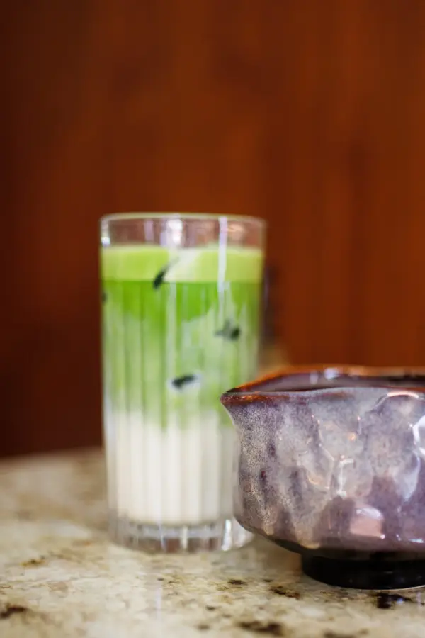 La façon traditionnelle de préparer le matcha vient de la cérémonie du thé japonaise. Le bol à matcha, le fouet en bambou (chasen) et la spatule en bambou (chashaku) sont des éléments essentiels de ce rituel. Ajouter 2 chashaku de matcha (1,5 g) dans un bol à matcha et verser 100 ml d’eau chaude (80°C). Fouetter vigoureusement votre matcha avec le chasen. Le mouvement doit partir du poignet et former la lettre « M » (et non pas un cercle). Au bout 30 secondes environ, votre bol devrait être rempli d’une jolie mousse de couleur vert jade. Ensuite, vous pouvez ajouter plus d’eau si vous préférez que le matcha soit moins fort.