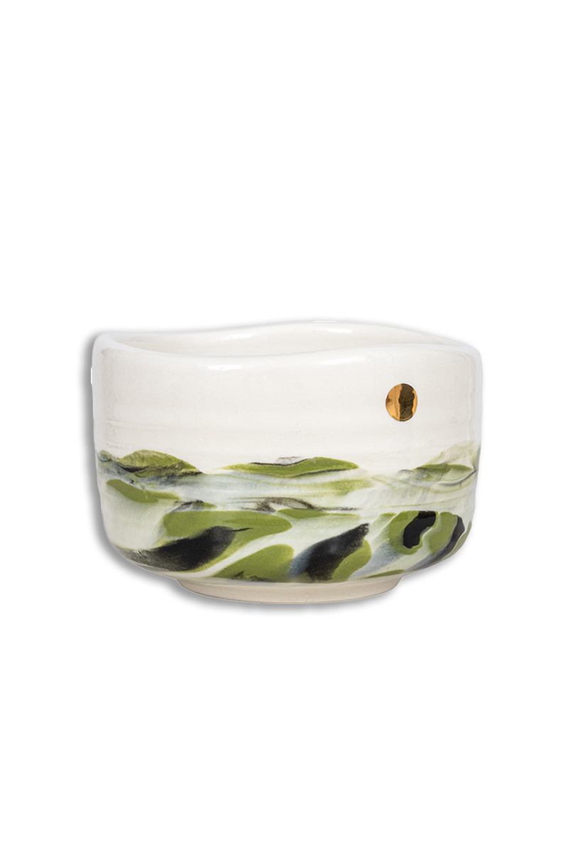 Matchawan Yama est un bol à matcha façonné à la main dans une porcelaine de haute qualité. Son nom signifie « montagne » et évoque des formes naturelles apaisantes, inspirées du paysage. Sa silhouette minimaliste et sa finition délicate en font un objet parfaitement accordé à l’esthétique du rituel quotidien du matcha.