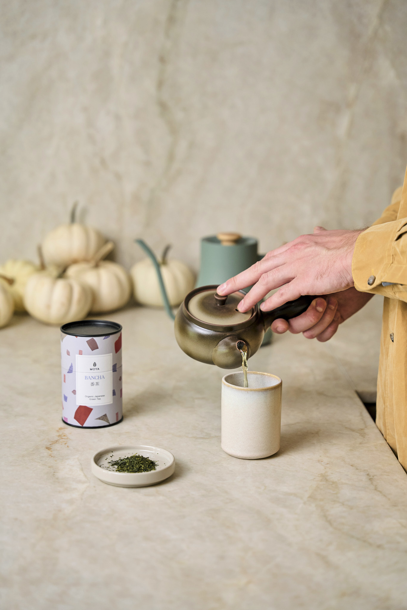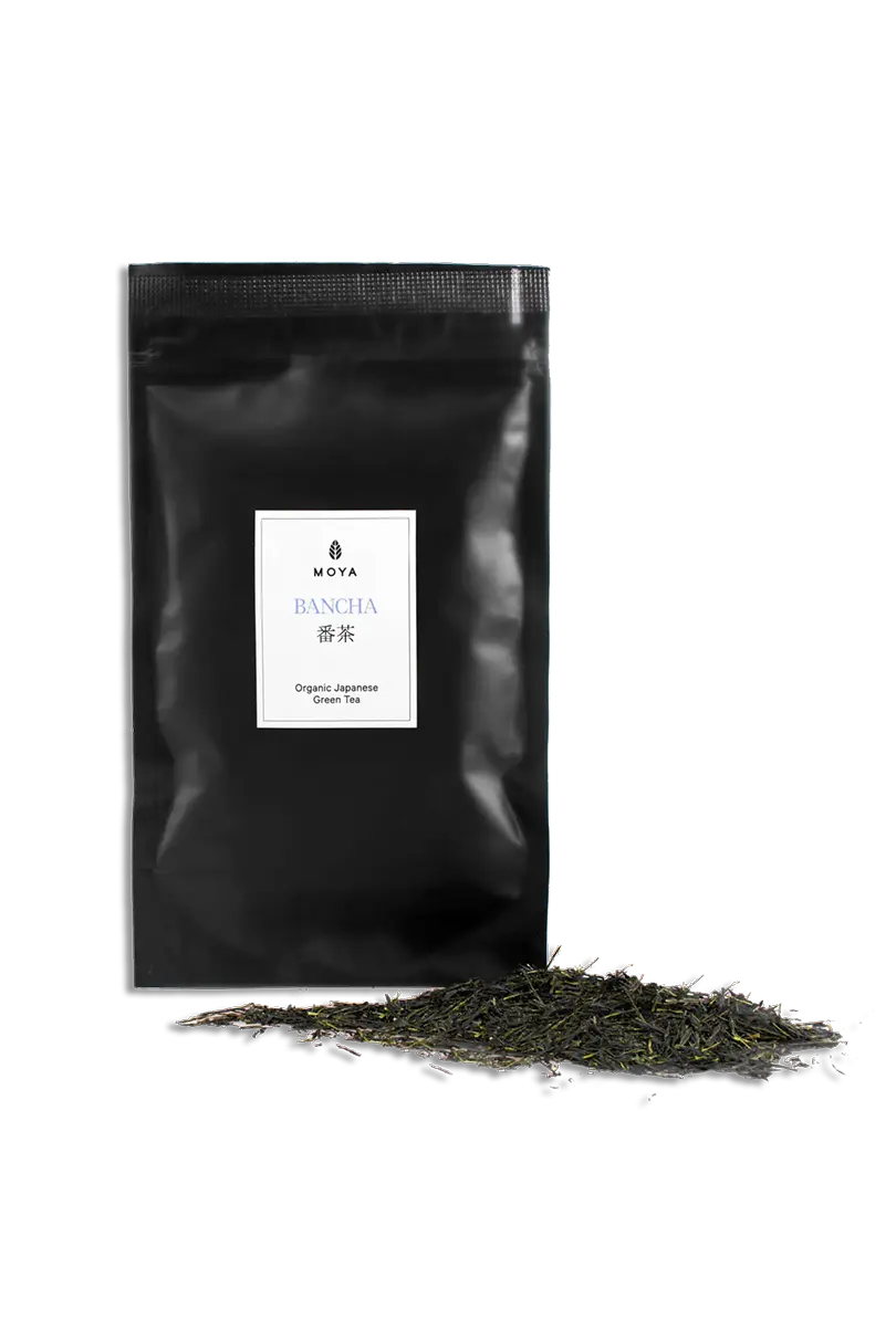 Le Bancha est un thé vert d’une couleur jaune-dorée. Grâce à une grande concentration de tanins, le Bancha a une saveur légèrement acidulée et un arrière-goût de noix qui le distingue parmi tous les autres thés. Le nom bancha (玄米茶) dérive des mots « ban » et « cha ». En japonais, « cha » signifie « thé » et « ban » peut être compris comme « quotidien », « populaire » ou « tardif ». Ce dernier adjectif fait référence aux récoltes tardives des feuilles de Bancha issues des parties inférieures des théiers. Moya Bancha est cultivé selon les principes de l’agriculture organique sur l’île de Kyūshū.