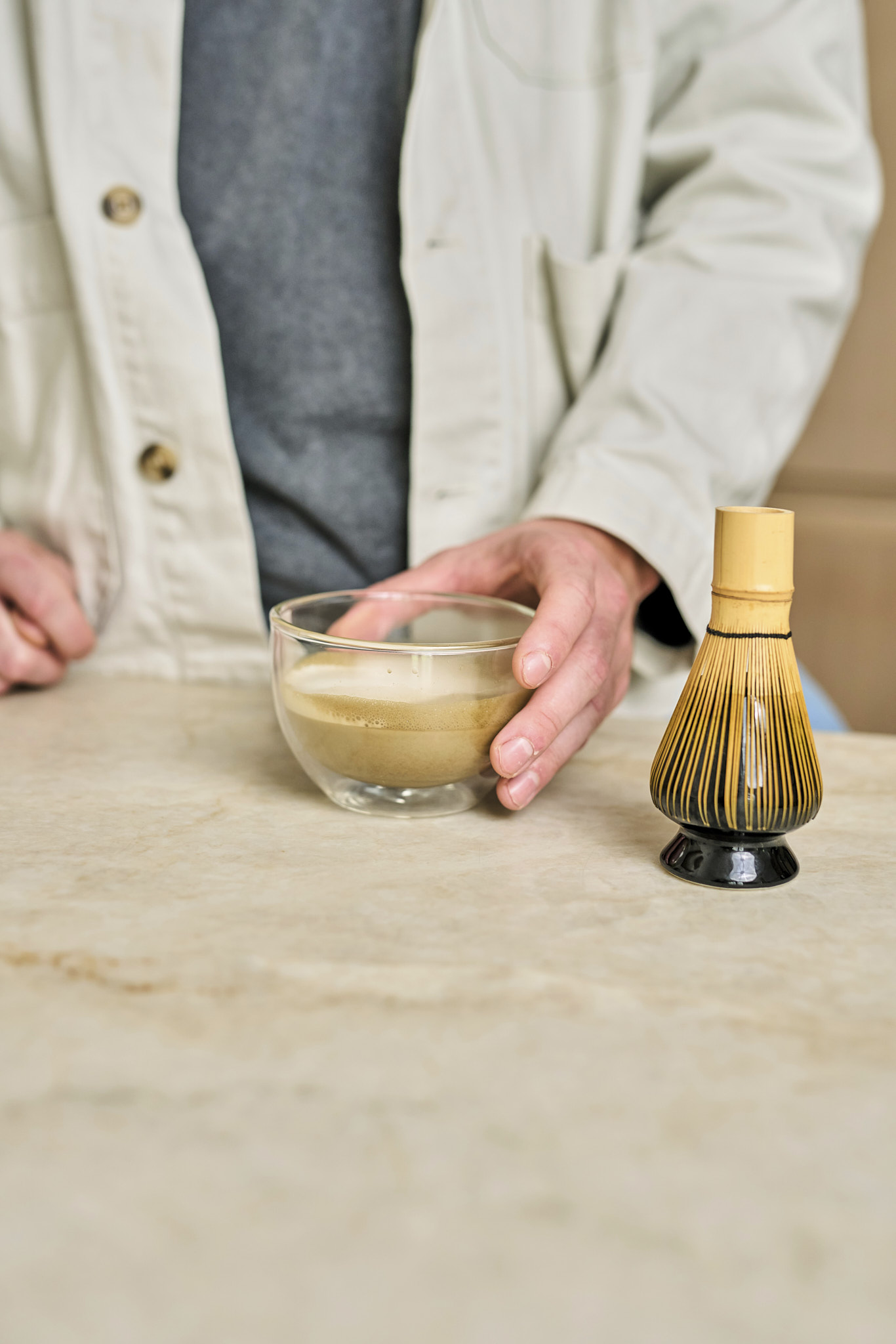 Le fait de réduire l’hojicha en poudre a créé de nombreuses nouvelles possibilités de préparation, en commençant par une boisson lactée à base de celle-ci, le hojicha latte – découvre la recette. Le processus de préparation est similaire à celui du matcha latte et il est tout aussi délicieux, qu’il soit servi froid ou chaud. Pour préparer un hojicha latte, il faut mélanger une portion de poudre d’hojicha avec de l’eau à l’aide d’une cuillère, un mousseur à lait ou un chasen, c’est-à-dire un fouet en bambou traditionnellement utilisé pour diluer le matcha dans de l’eau. Ensuite, il convient de verser du lait ou votre boisson végétale préférée et ajouter du sucre pour apprécier le goût enveloppant de la boisson. Cette combinaison, avec son arrière-goût de noix, ne manquera pas de satisfaire les amateurs de café ou de cacao. La poudre d’hojicha est également un excellent allié de la cuisine : pour préparer des glaces, des macarons et des gâteaux ainsi que pour des mets salés. Et vos enfants tomberont aussi sous son charme ! La poudre d’hojicha de chez Moya est originaire de la préfecture de Kagoshima, au Japon.