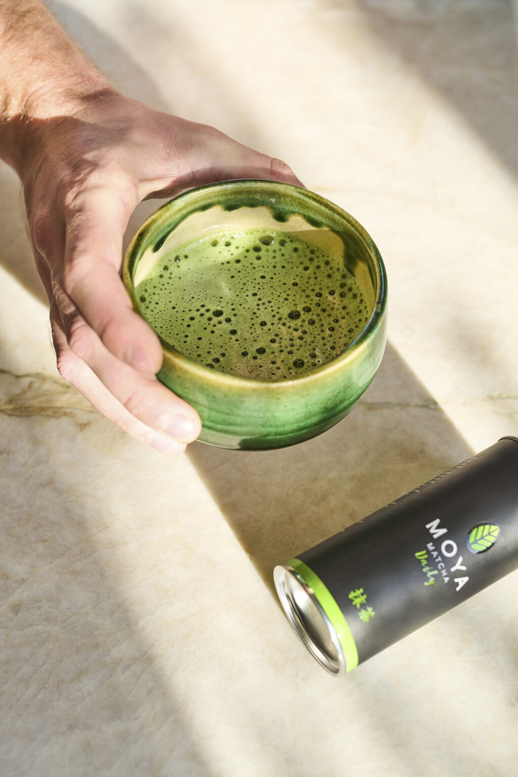 Vous pouvez préparer votre Matcha de manière extrêmement rapide dans le shaker en verre Moya ou dans une bouteille : ajoutez simplement du matcha au liquide de votre choix (eau, jus ou lait), secouez et c’est parti !