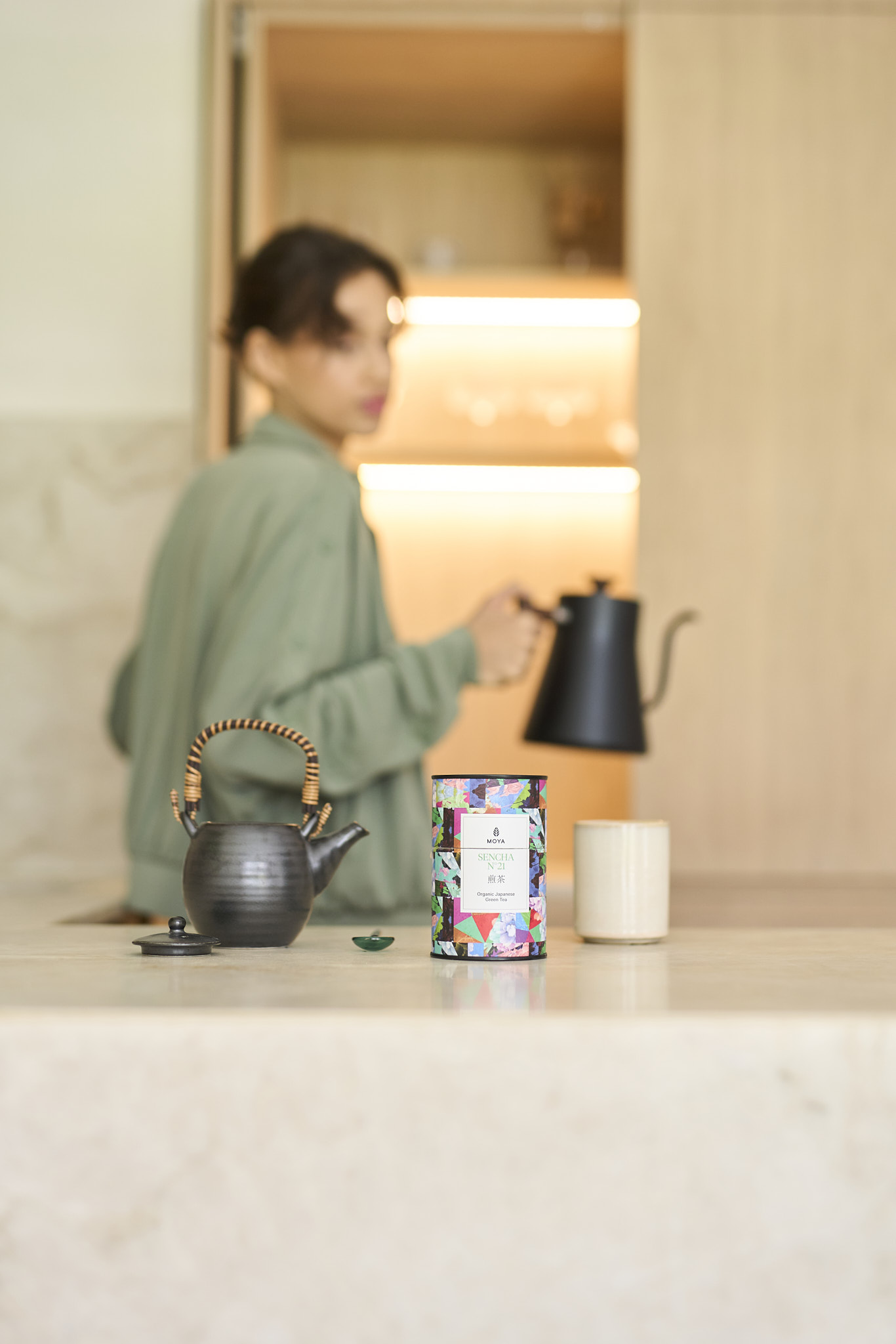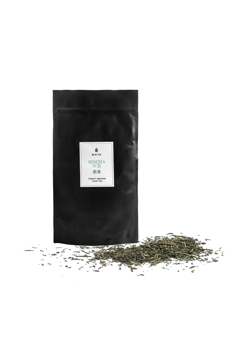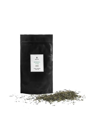 Le Sencha est le plus populaire des thés au Japon et c’est aussi le thé vert le plus connu au monde. Une fois infusé, il gagne un goût légèrement sucré et très rafraîchissant, avec des notes beurrées et herbacées ainsi qu’une couleur dorée verdâtre. Le mot « sencha » signifie littéralement « brassé à basse température » et se réfère au brassage typique du thé en feuilles qui consiste à verser de l’eau chaude sur des feuilles sèches. Ce thé vous offre le maximum de ses saveurs lorsqu’il est infusé avec de l’eau douce à bas pH. Moya Sencha N° 21 est cultivé selon les principes de l’agriculture organique sur l’île de Kyūshū.