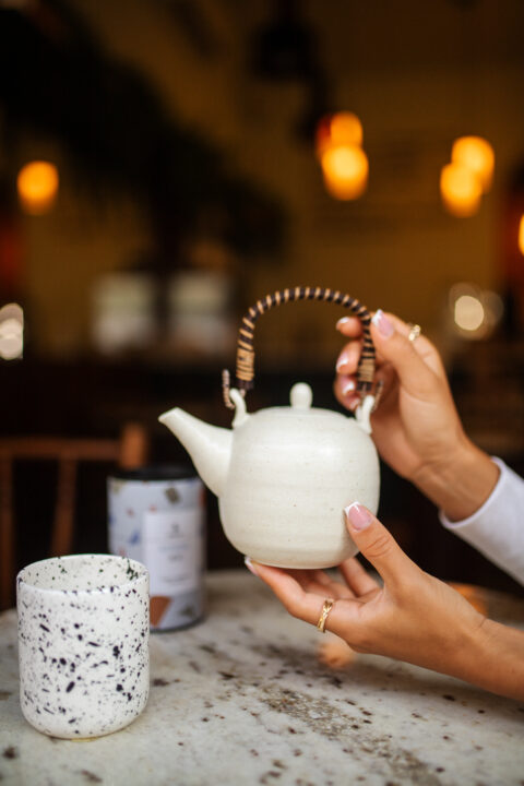 Récipient traditionnel en céramique pour la préparation du thé en feuilles.