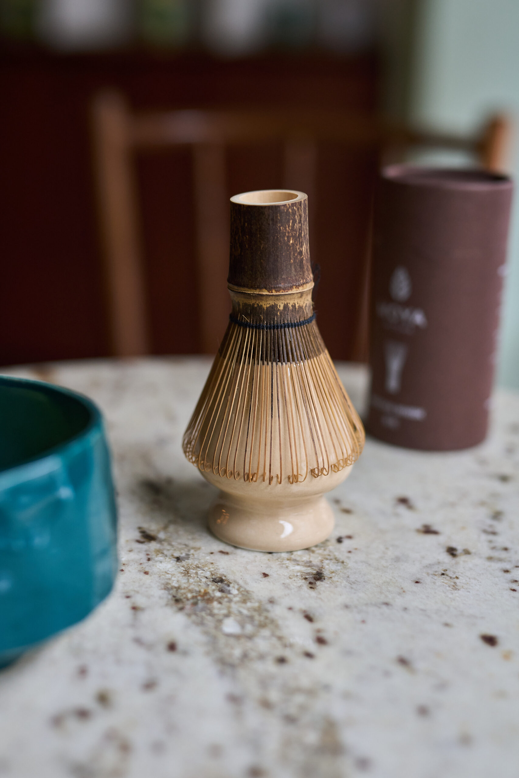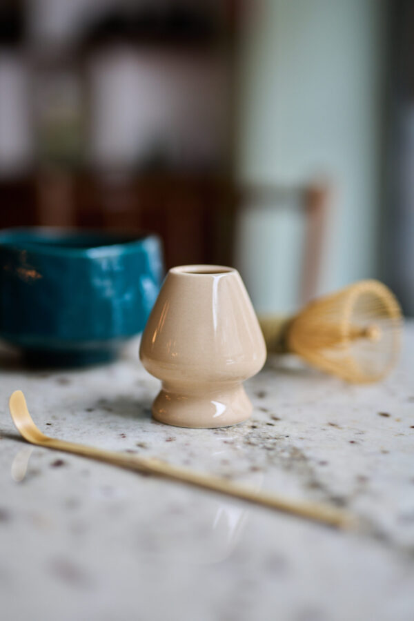 Le support pour fouet (chasen), appelé « naoshi » au Japon, est un élément indispensable du set de préparation du matcha de chaque amateur de ce thé. Fabriqué en porcelaine, le support aidera à garder les brins délicats de votre chasen en parfait état, sans déformations, pour une plus grande durabilité et longévité. Naoshi est un ustensile utilisé pour la cérémonie du thé traditionnelle japonaise depuis de nombreux siècles. Aujourd’hui, on le voit de plus en plus souvent dans les cuisines des personnes appréciant le matcha correctement préparé. Le chasen présenté sur la photo est vendu séparément.