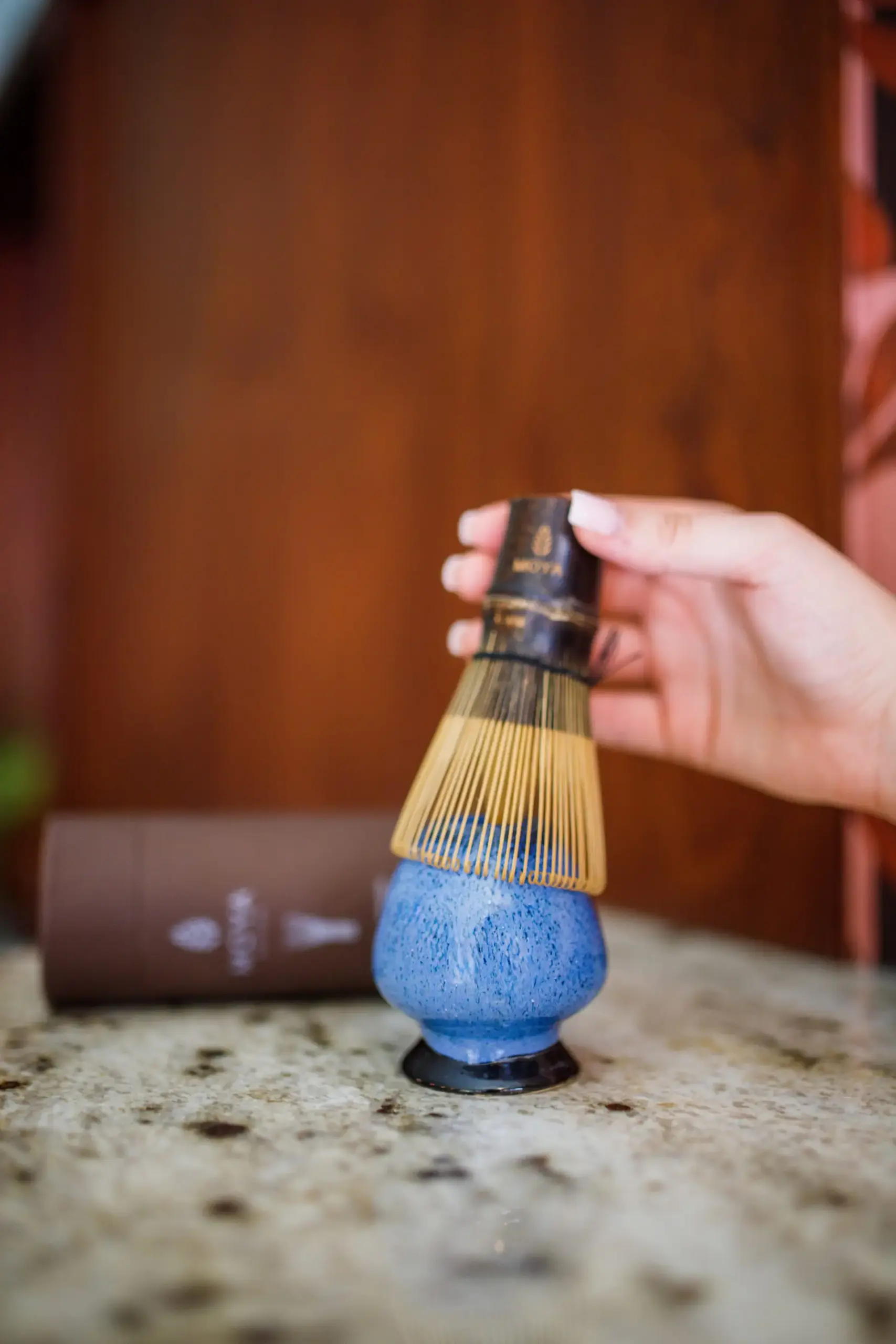 Le support pour fouet (chasen), appelé « naoshi » au Japon, est un élément indispensable du set de préparation du matcha de chaque amateur de ce thé. Fabriqué en porcelaine, le support aidera à garder les brins délicats de votre chasen en parfait état, sans déformations, pour une plus grande durabilité et longévité. Naoshi est un ustensile utilisé pour la cérémonie du thé traditionnelle japonaise depuis de nombreux siècles. Aujourd’hui, on le voit de plus en plus souvent dans les cuisines des personnes appréciant le matcha correctement préparé. Le chasen présenté sur la photo est vendu séparément.