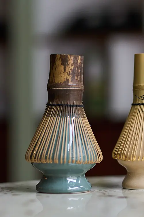 Le support pour fouet (chasen), appelé « naoshi » au Japon, est un élément indispensable du set de préparation du matcha de chaque amateur de ce thé. Fabriqué en porcelaine, le support aidera à garder les brins délicats de votre chasen en parfait état, sans déformations, pour une plus grande durabilité et longévité. Naoshi est un ustensile utilisé pour la cérémonie du thé traditionnelle japonaise depuis de nombreux siècles. Aujourd’hui, on le voit de plus en plus souvent dans les cuisines des personnes appréciant le matcha correctement préparé. Le chasen présenté sur la photo est vendu séparément.