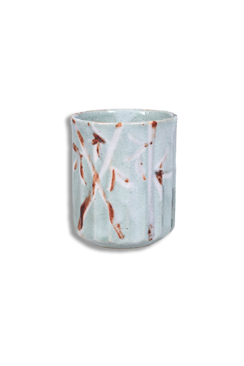Le mug Take est un récipient traditionnel pour servir le thé en feuilles. Grâce à ses parois cannelées et sa structure délicate, il tient confortablement entre les mains. Des motifs sur fond bleu font penser à des tiges de bambou caressées par le vent, d’où son nom « Take » qui signifie « bambou » en japonais.