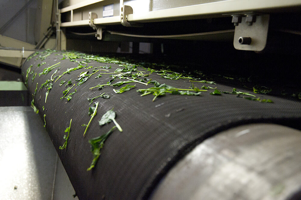 Après la cueillette, afin d’éviter que les feuilles s’oxydent et fermentent, il faut les transporter immédiatement à l’évaporation. Grâce à cela, le thé garde sa couleur verte vive, son arôme frais et ses valeurs nutritives. Après le bain de vapeur, le thé est séché de délicats coups d’air. Il vole librement à l’intérieur de la machine séchante et ses feuilles réduisent de six fois leur taille par rapport à leur volume initial. C’est comme ça qu’est élaboré l’aracha. Il est disposé sur des bandes plates pour un dernier séchage, contrairement aux thé destinés à être infusés en feuilles. Ceux-ci, par exemple le gyokuro ou le sencha, après le séchage, sont ensuite pétris et roulés en bobines : ce procédé a une influence sur le déploiement de leurs arômes pendant leur infusion plus tard.